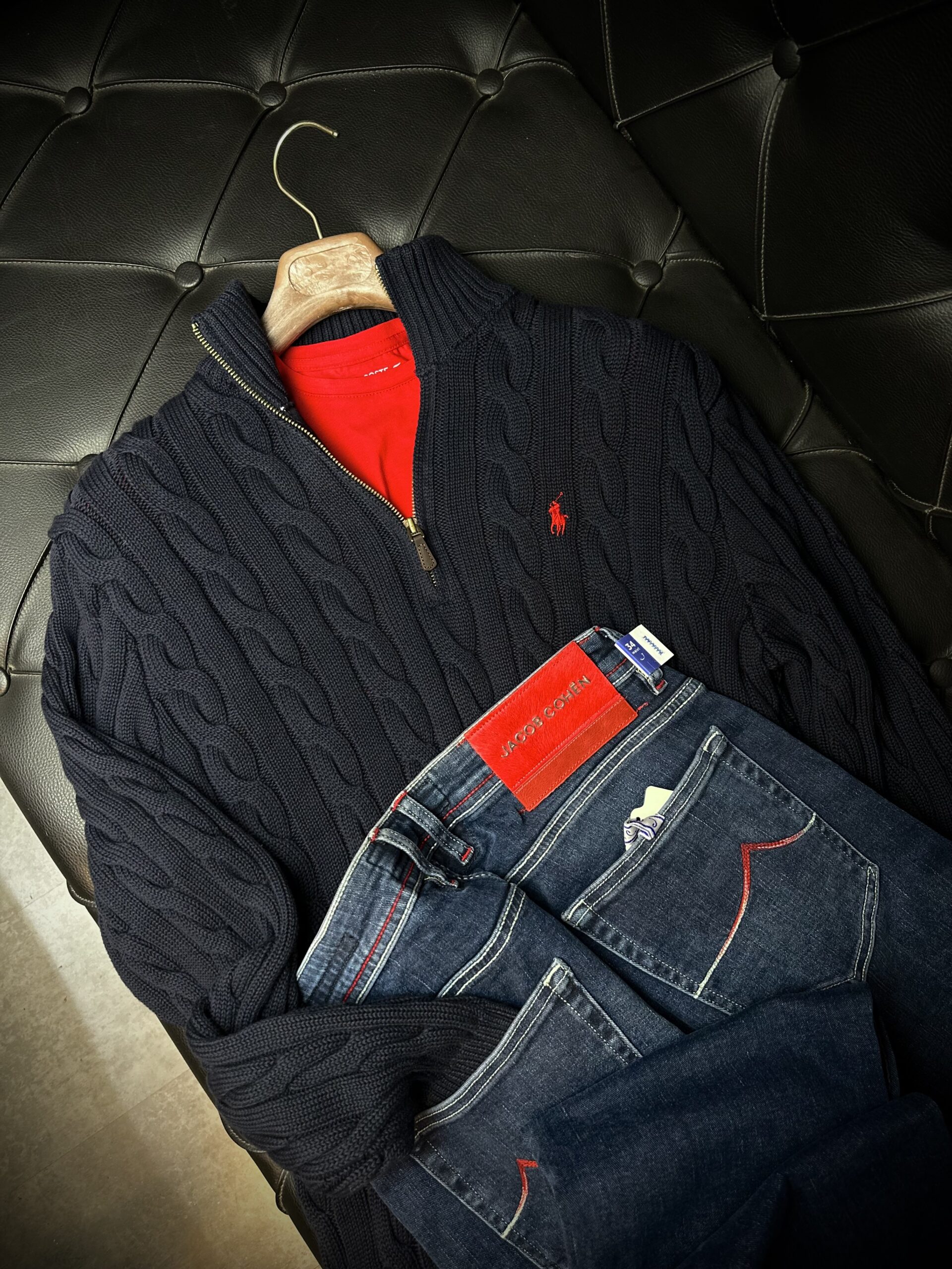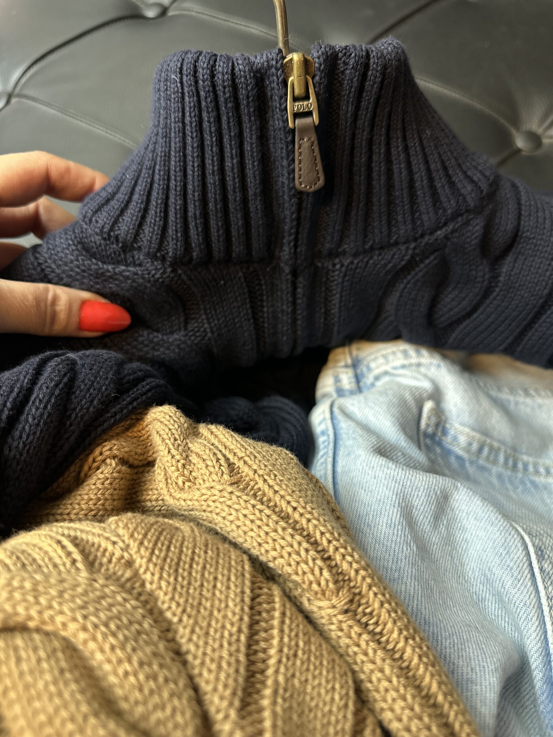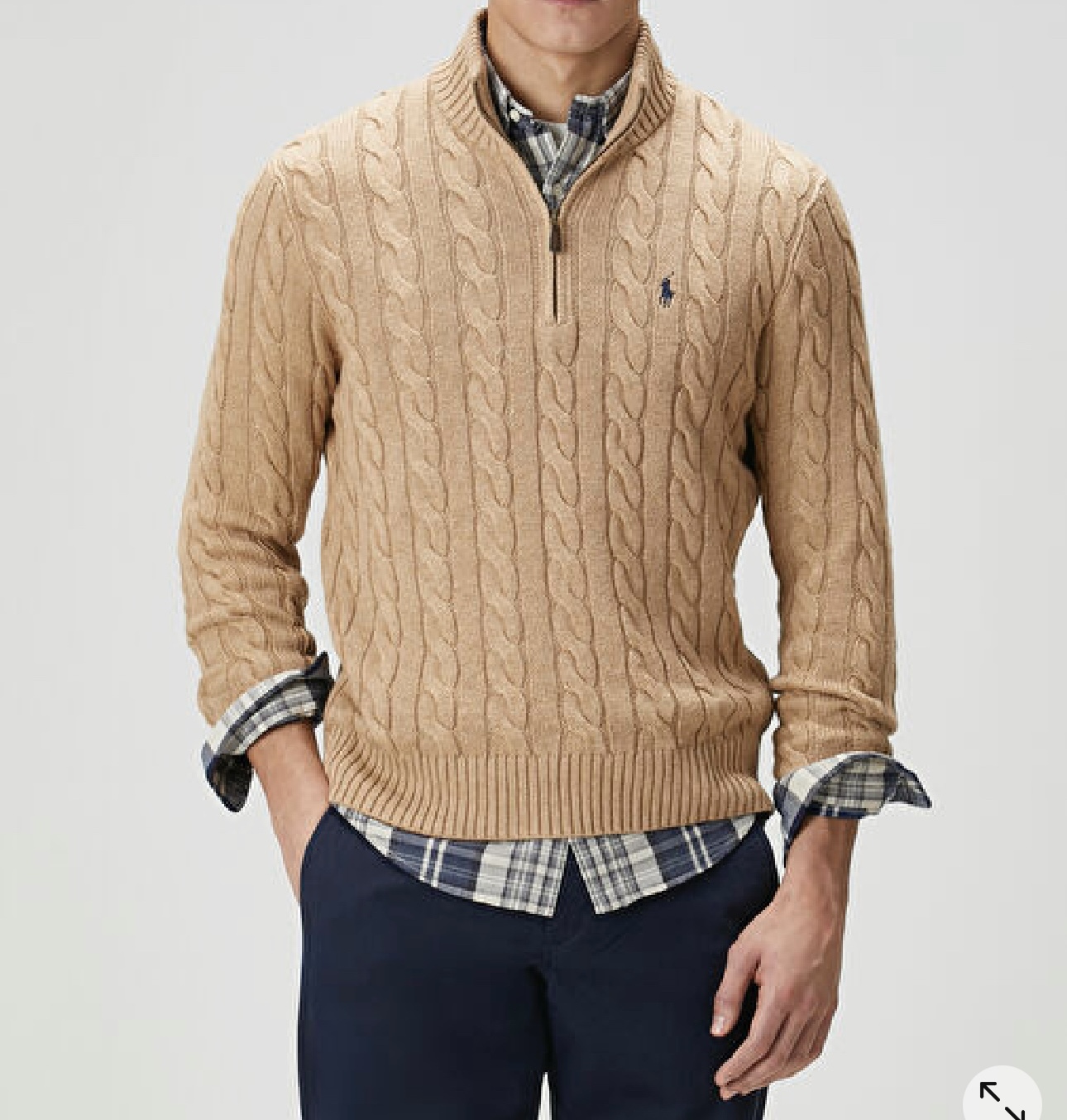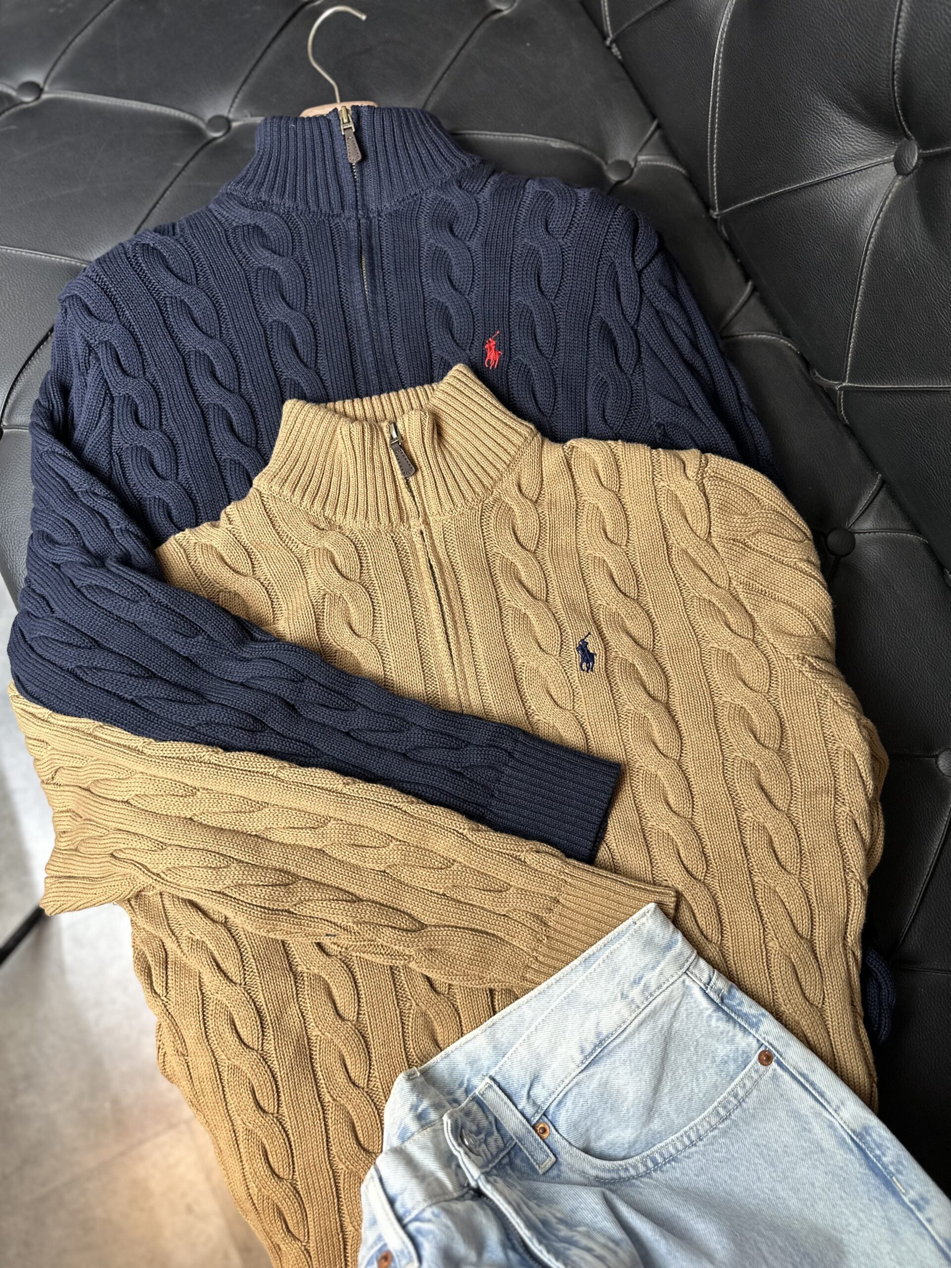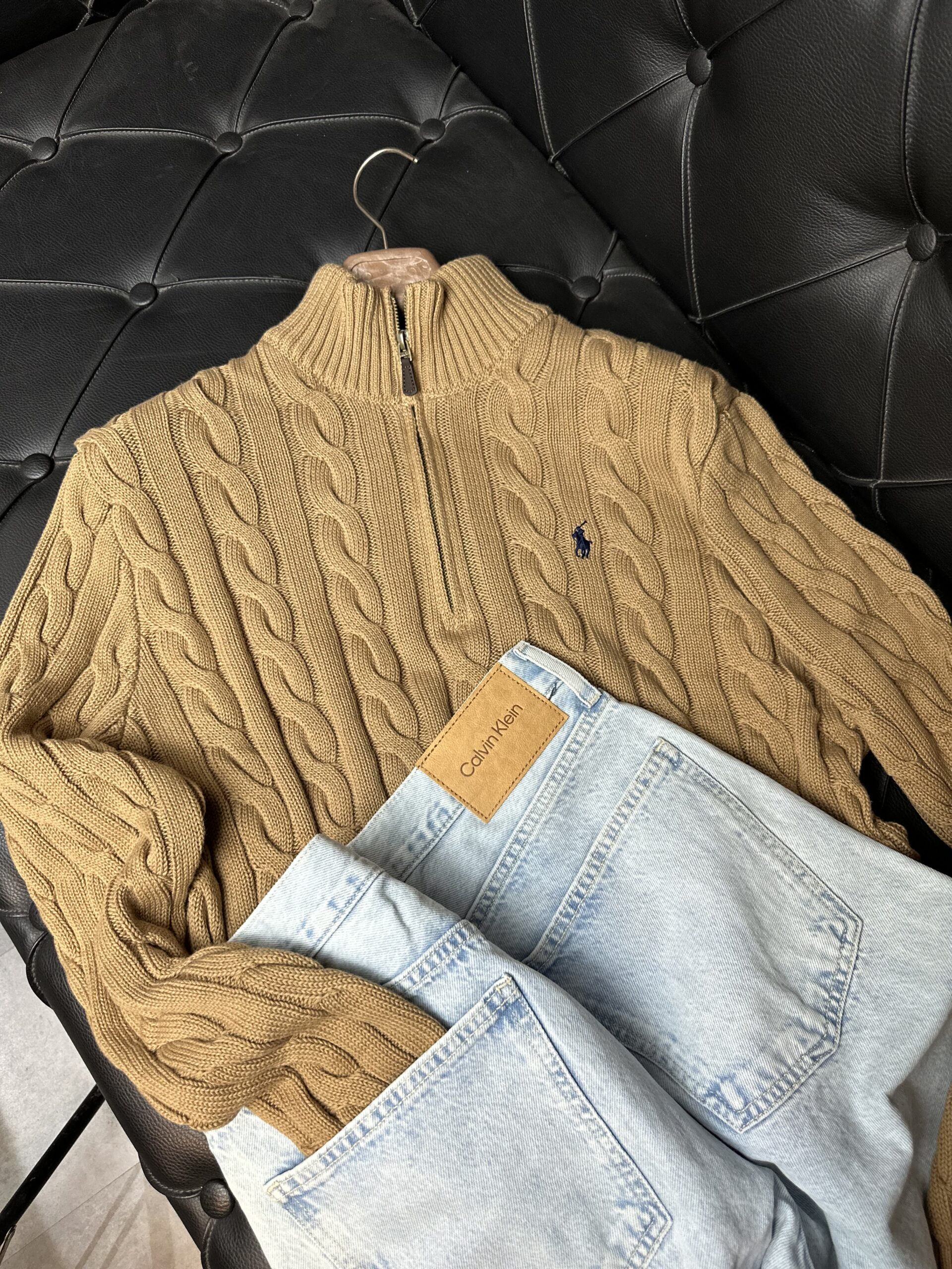 R Camel Yarım Fermuar Erkek Örgü Kazak